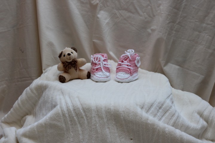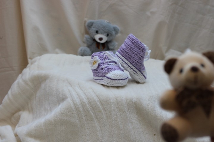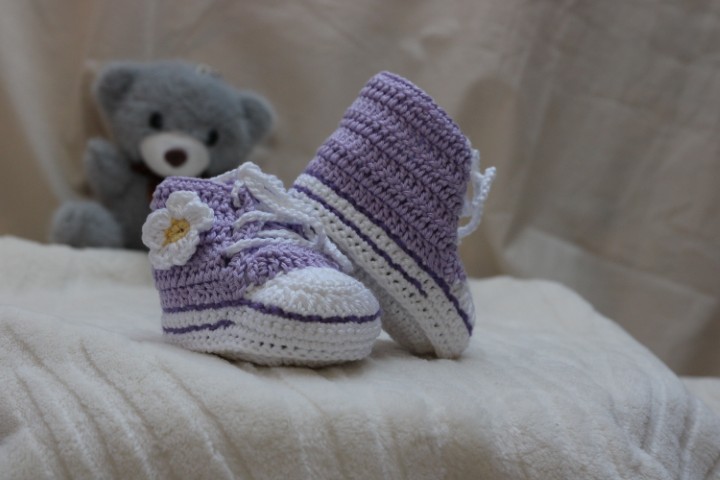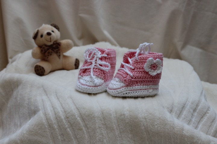 Preslatke heklane starke za bebe, rađene ručno od mekanog pamučnog konca, pružaju udobnost i toplinu najmlađima. Dimenzija dužina 9 cm, visina 6,5 cm, širina 5 cm čini ih idealnim za bebe od rođenja do 12 mjeseci. Lagane su, prozračne i nježne prema koži, a svojim izgledom podsjećaju na male modne patike – savršen poklon za novorođenče ili prvu bebu u porodici.